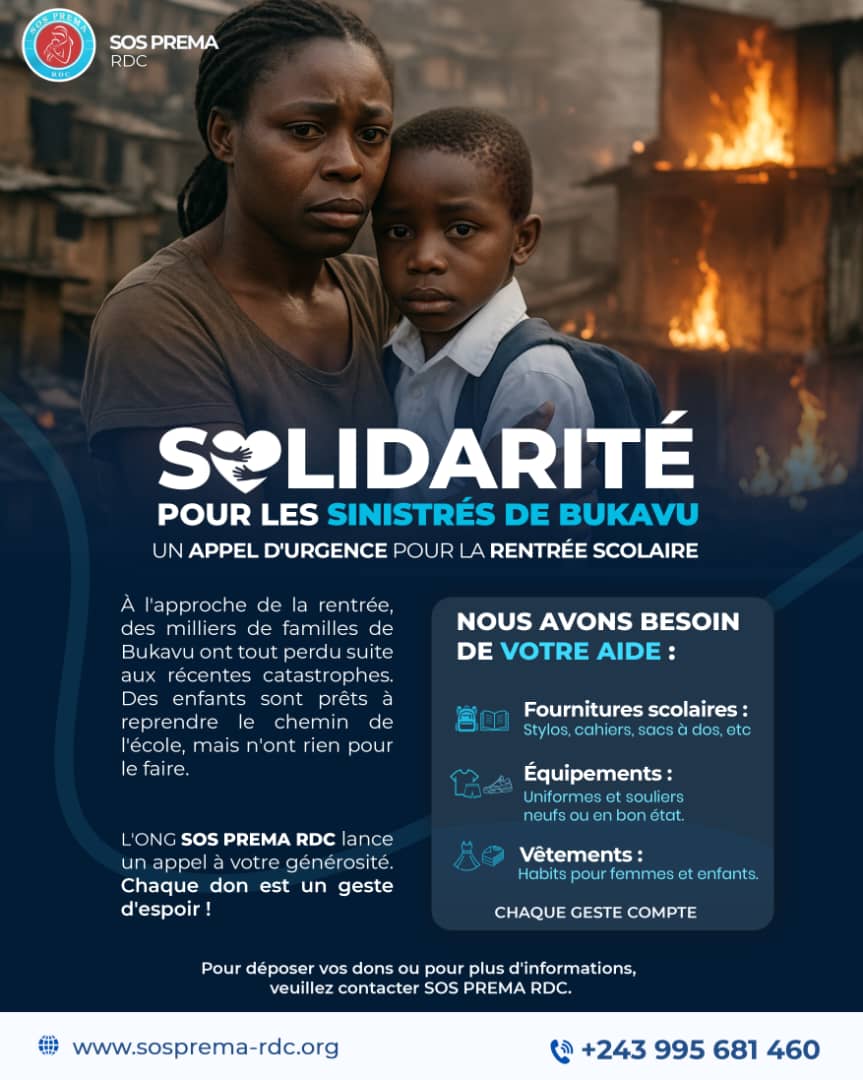 Le 24 août 2025 restera une journée marquée par la solidarité pour les habitants de Bukavu. Après le violent incendie qui a dévasté plusieurs quartiers, laissant des familles entières dans le dénuement le plus total, l’association SOS PREMA […]